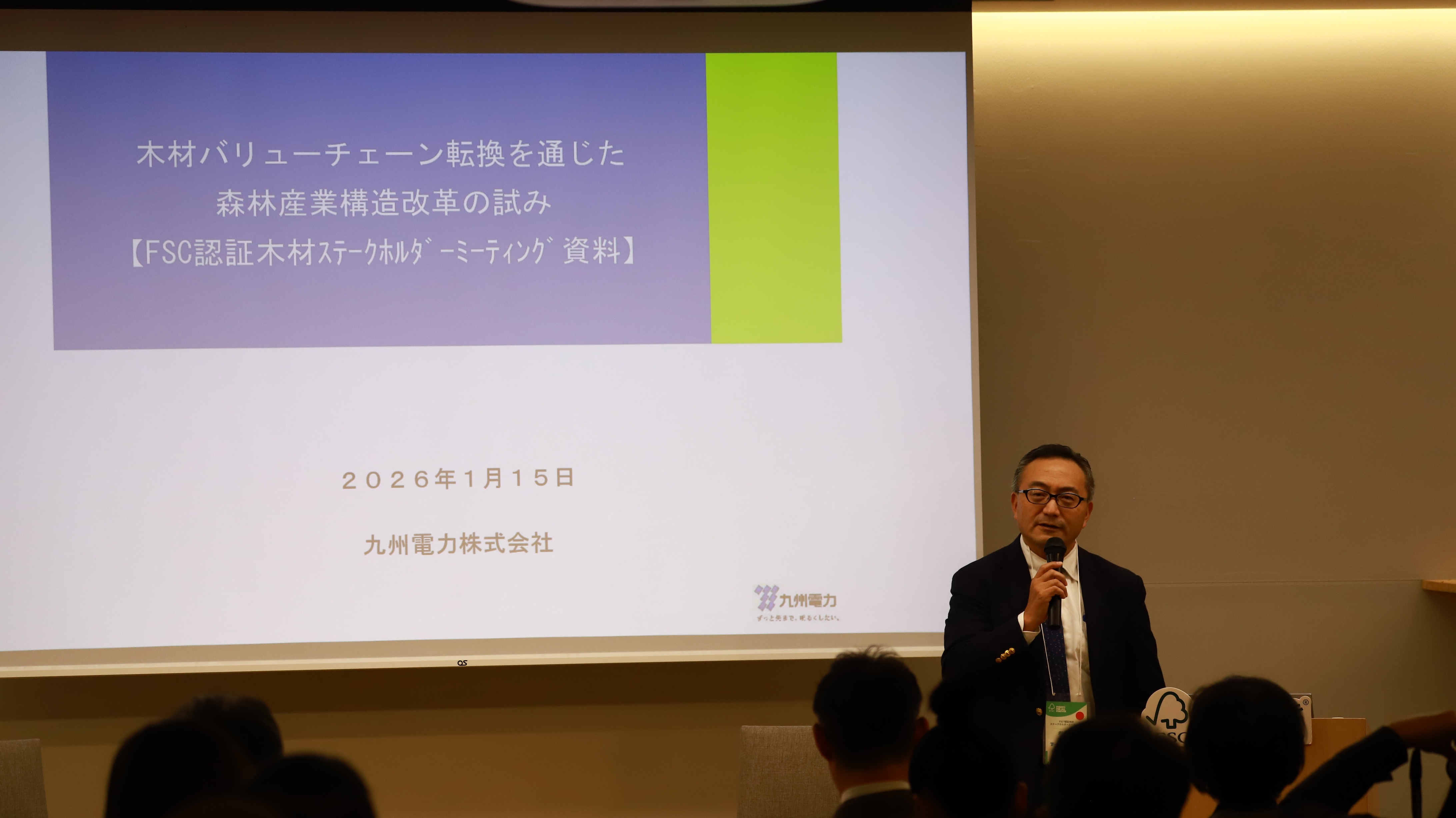 九州地域における木材バリューチェーン転換と分譲マンションでのFSCプロジェクト認証取得に向けた取り組みについて、九州電力株式会社 音成謙一郎氏、九電不動産株式会社 有吉光希氏のお二人からご紹介いただきました。