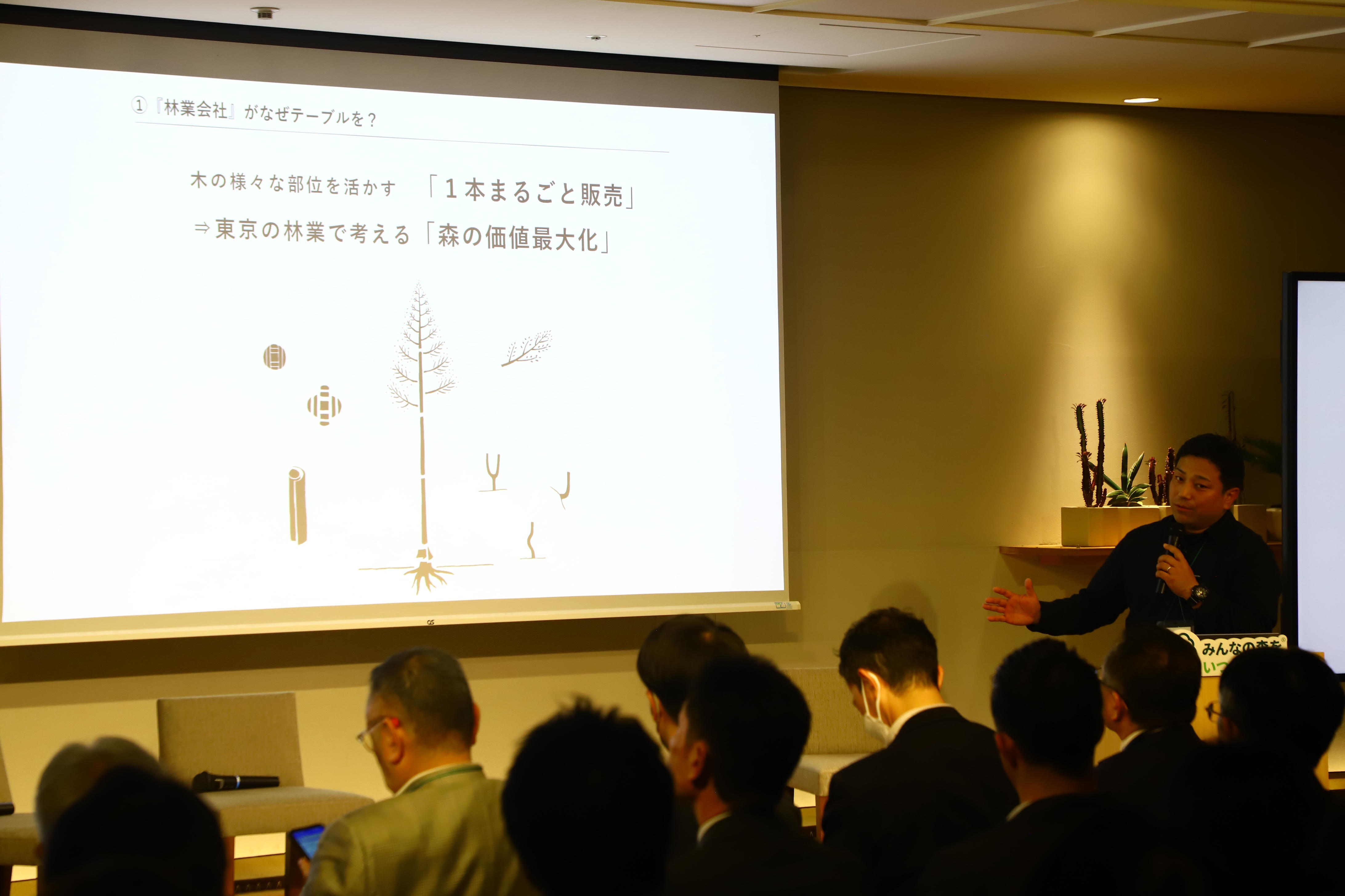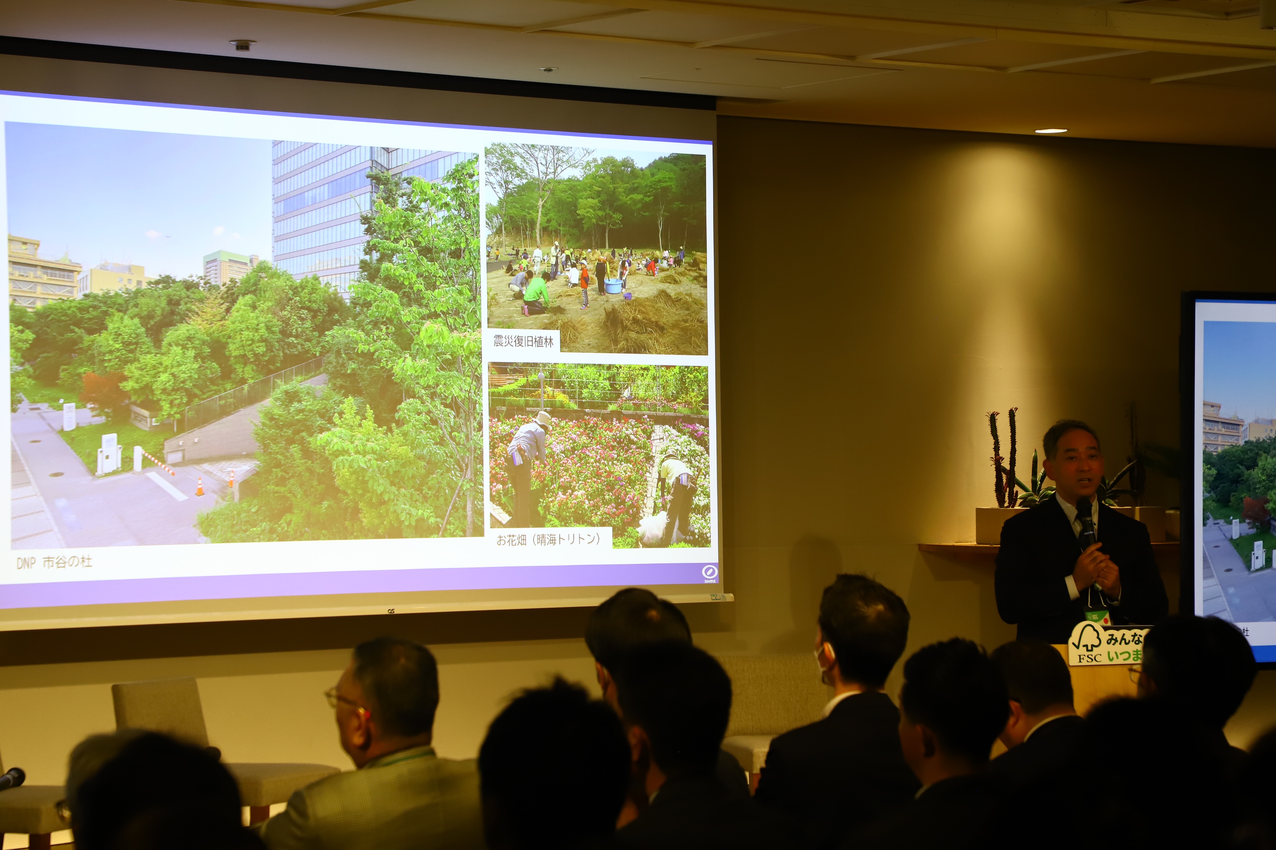 続いて、FSC認証木材利用に関する先進的な取り組み事例として、4名の登壇者の皆様に2つの事例をご紹介いただきました。